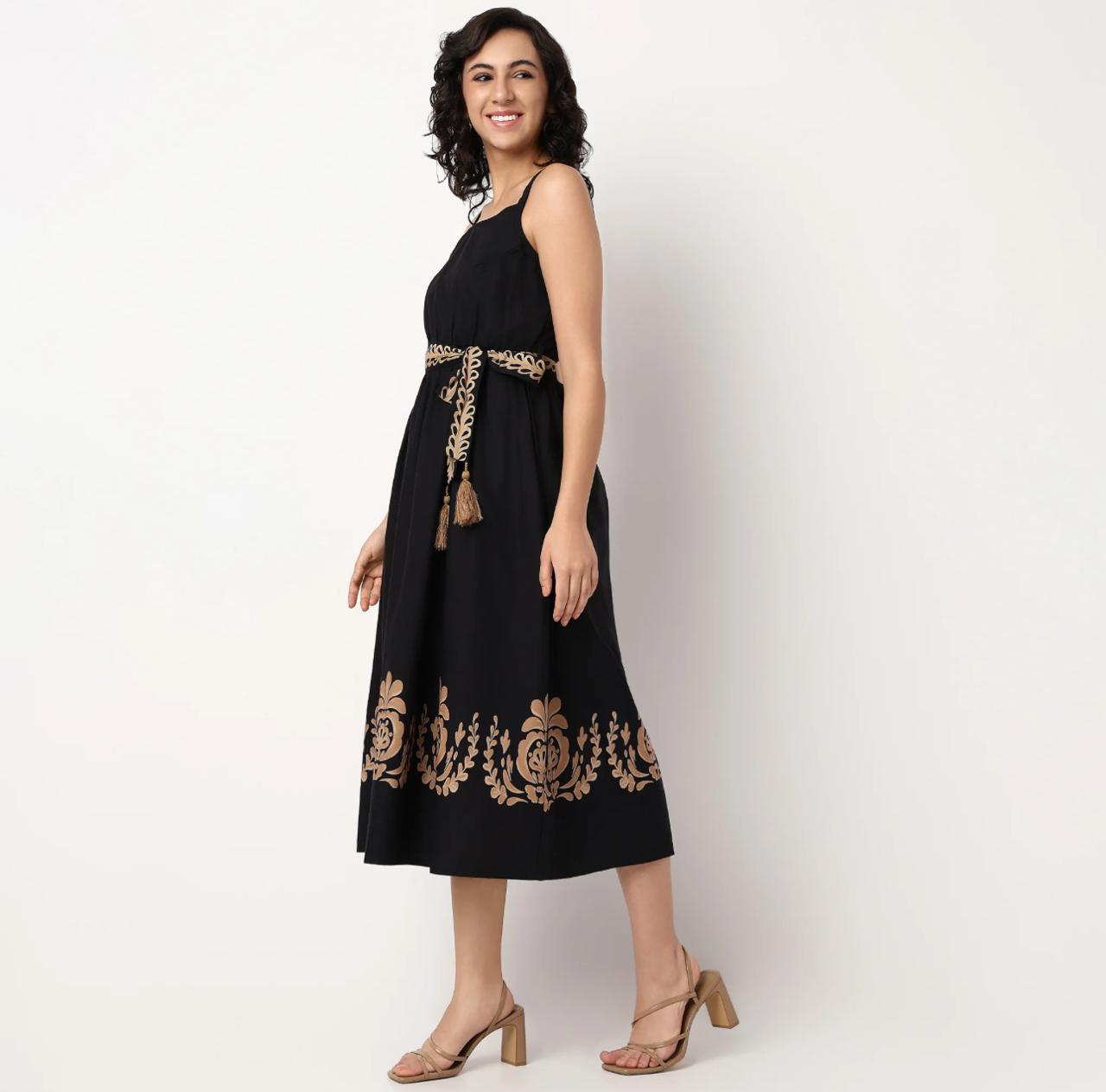 Experience the perfect blend of comfort and style with our Woven Strapy Flared Printed Dress. Crafted from 100% cotton, this dress offers a breathable and soft touch against your skin, making it ideal for warm days. The flared fit provides a flattering silhouette that moves gracefully with you, ensuring you feel confident and elegant.